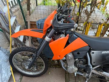 Moto perfetta usata casa lavoro poco fuoristrada.. Frizione, freni e pastiglie, pompa, gomme batteria e tagliando appena fatti!!in più cedo gomme semi sterrato e trasmissione per strada(rapporti lunghi) più paramani e parafanghi stradali.. Impianto elettrico funziona tutto compreso il clacson. Vendo per inutilizzo. Prezzo non trattabile e no affaristi e collezionasti di foto.. La moto vieni la provi e decidi . Moto targata necessita di passaggio a carico dell'acquirente
