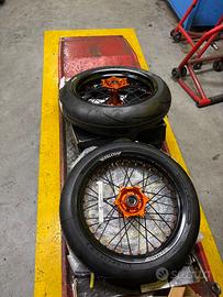Insieme cedo kit enduro, impianto frenante originale, vari pezzi originali e per tagliandi, cavalletto centrale e kit di attrezzi ktm.