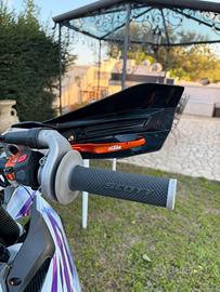 KTM exc-f 350 del 2025 nuova con all'attivo 72 ore di utilizzo, tagliando fatto ogni 10 ore con ricevuta dalla concessionaria KTM, la moto ha percorso 40 ore su strada da utilizzo motard e le restanti 32 per uscite domenicali. La moto possiede un kit di carene bianco con grafiche originali bold holografiche e glitterate, paraforcellone acerbis, cover serbatoio in carbonio (originale cmt), faro a led bluetooth con cambio colore, para forcelle in carbonio. Insieme alla moto lascio due kit di carene, un kit possiede grafiche personalizzate per l'enduro, il secondo è il kit originale KTM con catene e grafiche del 2025 (sul codino è presente ancora l'adesivo con le varie avvertenze della casa madre). Leve originali KTM antirottura. Vendo per inutilizzo