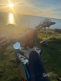 Vendo SPLENDIDA KTM EXC-F 450 MOTARD DEPOTENZIATA A LIBRETTO GUIDABILE CON A2 a 18 anni e assicurazione ridotta. moto in condizioni davvero ottime, tenuta da vero amatore, impiano radiale completo brembo (pompa 16x18, disco 350, pinza radiale), faro a led, forcelle e mono preparate da zucco settate motard, scarico akrapovic, cerchi excel 17, gomme supercorsa all'80 %, appena tagliandata e pasticche nuove, motore rifatto COMPLETAMENTE con 40 ore all'attivo, insomma motard 100% senza dare nulla per scontato. astenersi perditempo. Scambio solo con Aprilia 660, z900, Mt 09, R6, ktm 690, husqvarna 701, gasgas 700, hypermotard di pari valore, o con differenza da parte mia.