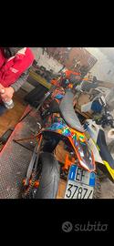 Vendo ktm exc 125 del 2009 per passaggio alla macchina Il motore è stato rifatto completamente un anno fa e ora ha 27 ore. Monta: Cerchi motard da 17 Gomme mitas 120/160 praticamente nuove Pinza 1618 brembo nuova(con fattura) Pompa m50 brembo nuova(con fattura) disco 320mm motomaster nuovo sposta pinza vm nuovo Forcelle wp e mono tarati motard by zucco modello nuovo Piastre in ergal nero Porta targa pieghevole Corona in ergal Pancia hgs nuova Terminale katrace Carene nuove con grafiche by rosedesing Radiatori sostituiti al rifacimento del motore Sella by selle della valle Specchieti Faro angel eye esagonale con cambio colore del led dal telefono IL PREZZO È TRATTABILE La moto è come nuova e non per sognatori, è del 2009 ma fa invidia alla maggior parte di quelle nuove