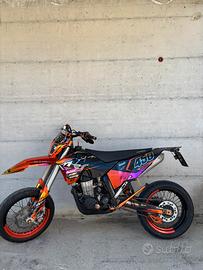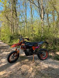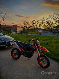 Vendo Ktm exc-r 450 anno 2008, targata. La moto attualmente ha 85 ore. Tagliandi eseguiti ogni 15/20 ore, cambio filtro olio fatto. - Accensione elettrica e pedivella - Pompa dell’acqua nuova - Alternatore nuovo - Batteria Yuasa nuova - Controllo valvole fatto - Candela nuova al litio - paraurti e faro a led ktm annate 2014-2016 - Ventola di raffreddamento con tasto a manubrio -kit gratiche full custom - Cerchi motard da 17 con bicolor e corona nuova da 44 - cedo anche plastiche originali come in foto e molti altri accessori, come scarico originale, collettore, varie plastiche ( paramani, faro originale, frecce originali…) - cedo anche cerchi cross, con altre due corone una da 51, l’altra da 49 No omologata motard. Moto molto potente e divertente da usare. Per gli anni che ha è tenuta molto bene. Tenuta sempre in garage. Per più info scrivetemi pure. Prezzo trattabile. Vendo per cambio cilindrata.