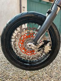 Vendo come da titolo Ktm exc r 450 del 2008 motore revisionato 40 h fa catena, corona e pignone nuovi motorino di avviamento nuovo disco anteriore 320 pompa 16x16 radiale assieme alla moto ho un altro set di plastiche bianche, e molti altri ricambi ( un altro mono, un set di piastre, 4 corone ecc.) appena tagliandata unci difetti: gomma posteriore da sostituire, e forcelle da revisionare (causa perdita olio) il motore gira veramene bene vendo per mancata possibilita di poterla usare per strada SCAMBIO solo con cross 125 anche datati ( dal 2001 in su, possibilmente giapponesi) scrivere solo se interessati, prezzo trattabile dopo visione, rispondo a tutti