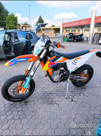 Vendo ktm 450 sxf del 2021 utilizzabile con patente A2 con doppia omologazione enduro e motard fatta da vm racing moto con 136 ore totali tagliandata ogni 20 ore cambio 6 marce, catena corona e pignone in ottimo stato, pastiglie nuove prezzo trattabile, possibilità di avere anche gomme e cerchi da enduro prezzo da concordare