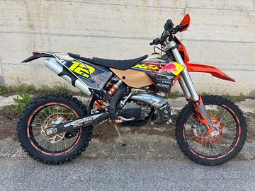 Vendo ktm 250 exc del 2011 la moto ha 340 ore totali a 240 é stato rifatto completamente il motore a 330 ore sono stati fatti molteplici lavori forcelle, mono, pistone, cuscinetti ruota anteriori e posteriori, boccole mono, boccole forcellone , sterzo, frizione, dischi, pastiglie, catena corona e pignone, pacco lamellare vforce 4, motorino avviameto bedix e boccole accensione rinforzate la moto è efficiente al 101 % AVVIAMENTO ELETTRICO FUNZIONANTE conta km funzionanate, la moto é perfetta per qualsiasi info contattatemi