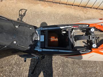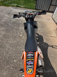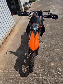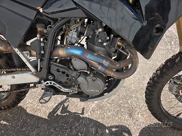 Ktm lc4 640 del 2000 depotenziata a libretto, omologata per 2 persone e ha omologazione sia enduro che motard. Motore del 2005 con frizione idraulica, Keihin fcr 41 mx, frizione antisaltellamento surflex, paramotore in alluminio, cerchi Excel, forcelle wp da 48, piastre nere dal pieno, scarico completo akrapovic, telaietto in alluminio, scatola aria grande versione motard, faro exc, coda exc, batteria litio, centralina ed impianto elettrico del 2005. Al momento monta sella e serbatoio da 9 litri del 625, ma possiedo anche sella e serbatoio del 640 da 12 litri, possiedo anche un'altra coppia di cerchi motard, pezzi da concordare in fase di acquisto