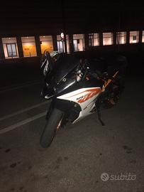 vendo bellissima ktm rc 125 del 2017, la moto al momento non funziona, è ferma da 3 settembre 2025, non so che problema abbia ma non dovrebbe essere niente di grave considerando il modo in cui si è fermata, per tutto il resto l'ho sempre tenuta bene, sempre scaldata prima di partire e manutenzione regolare, presenta diversi segni sulle carene dovute a una caduta da fermo, monta manopole originali ktm, le pedaline sono da cross, sono provvisorie infatti non stanno ferme però io ci sono sempre andato a giro senza problemi, revisione fatta a luglio 2025, NON spedisco, prezzo trattabile dopo la visione, per altre info contattatemi
