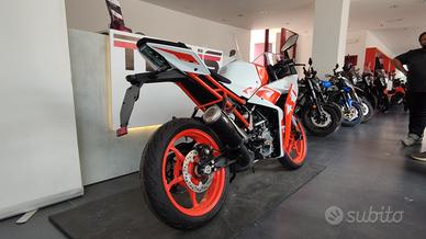 DESCRIZIONE : ultima RC 125 km 0, moto nuova solo immatricolata, un'opportunità di risparmiare circa Euro 2.000 rispetto al listino ed acquistare una moto nuova con garanzia ufficiale KTM, la sportiva 125 più potente delle due ruote! Il prezzo esposto si intende escluso passaggio di proprietà.