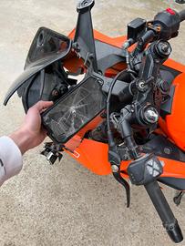 Vendo KTM RC 390 versione GP incidentata. Perfetta per uso pista poiché le parti strutturali e meccaniche della moto sono integre. La moto ha poco più di 10 mila chilometri. Vendo per passaggio ad auto