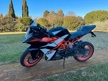 Vendo/Scambio Ktm rc 390 my 17. La moto è in perfette condizioni non essendo mai stata coinvolta in incidenti e non essendo mai caduta in marcia, non presenta danni estetici ne tantomeno graffi .Per quanto riguarda i lavori fatti ho provveduto alla sostituzione di gomme (ho messo delle Diablo rosso 3 dal costo di circa 300?) e kit trasmissione completo Ktm (lavori fatti in concessionaria Ktm certificata), oltre la moto monta codino racing regolabile di serie per il resto è completamente originale. Moto tenuta maniacalmente con cambio olio, filtro e filtro dell'aria fatti sempre in concessionaria con relativi documenti. Moto tenuta principalmente al coperto usata solo d'estate.