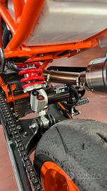 Vendo ktm rc 390 uso pista, ma ho tutti i conponenti stradali intonsi, la moto ha percorso 2300 km su strada e i restati in pista, la moto attuanwbtr ha 2505 km. di seguito troverete tutta la lista di accessori montati. pedane regolabili tamponi forcellone para leve sella in neoprene carene compete, alcune ancora da montare scarico completo Dominator protezioni carter gb racing Gomme pirelli supercorsa v4 pompa radiale magura 15 tamponi staffa per scarico forcelle yss mono posteriore yss filtro aria bmc centralina rimappata semimanubri e collari sportivi Corona da 44 e 45 denti Pignone da 14 e 16 denti di alcuni prodotti gia montati ho anche una seconda coppia di ricambio. per qualsiasi informazione non esitate a scrivermi tramite subito. Non accetto offerte ridicole, prezzo trattabile, siate liberi di contattarmi, anche per eventuali permute.