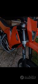 La moto monta uno scarico Akrapovic omologato (completo di certificazione), fanale led, plastiche arancioni (do insieme anche il fanale e le plastiche originali), specchietti a manubrio omologati, paracolpi tm (per la troppa velocità ha perso la K per strada).