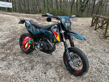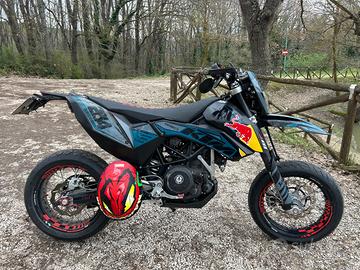 Vendo KTM 690 SMC Full Power(2008) - Perfette condizioni meccaniche con qualche difetto estetico. Prezzo: 6300€ Anno: 2008 Chilometraggio: 35500km Cilindrata: 654 cc Descrizione: Vendo a malincuore splendida KTM 690 SMC del 2008 per cambio cilindrata. La moto è stata tenuta sempre in box al chiuso e sui cavalletti. Utilizzata principalmente per uscite domenicali e ciclo urbano, mai pista. Il leggendario motore LC4 è un orologio, spinge forte ad ogni regime ed è divertentissima tra le curve, incarnando il vero DNA motard di KTM. Manutenzione: • Tagliandi eseguiti regolarmente ogni 3000 km. • Lavori effettuati : Pulizia corpo farfallato, regolazione gioco valvole, frizione, tendicatena, trasmissione, mappatura Akrapovic fatta dai Fratelli Fucile di Salerno, sonda lambda. • Batteria in buono stato. •Ultimo tagliando eseguito un mese fa(se interessati mando fattura lavori) Stato Usura: • Gomme: Metzeler M9 RR 100% anteriore e posteriore • Freni: Pastiglie a metà usura dischi in più che buono stato. Accessori e PowerParts: • Terminale SC Project omologato • Portatarga con targa estraibile • Frecce dinamiche a LED •Faro anteriore con frecce integrate •Paramotore •Diversi accessori Sm •Collettore termocromato tekmo con Powerbomb(spietata ai medi regimi) •Plastiche aggiornate •Contachilometri in perfette condizioni originale •Grafiche personalizzate Inutile dire che questa moto è una perla per gli amanti del vero motard. Dispongo di quasi tutti i pezzi originali, che consegnerò insieme alla moto Condizioni di vendita: La moto è pronta all'uso e necessita solo di qualche lavoretto a livello estetico . È visibile a Genzano di Lucania (PZ)anche con un vostro meccanico di fiducia. Prezzo leggermente trattabile dopo visione. Per favore, astenersi perditempo.