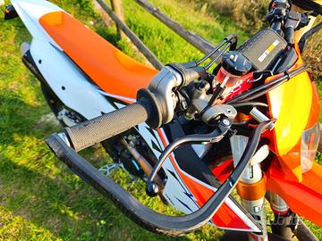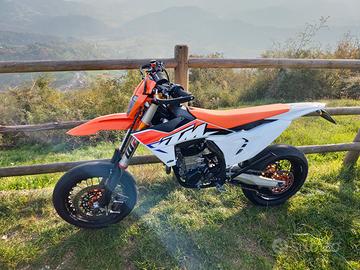 Vendo per cambio tipologia KTM SMR 450 2023 con meno di 58 h e 3000 km all'attivo, usata sporadicamente in questi due anni. Monta già di serie cambio elettronico e frizione antisaltellamento. Monta alcune power parts che sono: - Impianto freno anteriore completo ACCOSSATO by VM Racing (che comprende, pompa freno 16x16, pinza 4 pistoncini 108mm, disco 320mm e il resto del kit facilmente consultabile dal loro sito) - piastre di sterzo by VM Racing arancioni complete - cerchi Kyneo by VM Racing tubeless con gomme Metzeler Racetec RR ant 120/70 r17 e post 160/60 r17 - qualche power parts in carbonio by CMT Compositi Moto con tripla omologazione ovvero motard, enduro e cross Sempre tagliandata ovvero cambio olio e filtro olio ogni 12h, e catena ingassata ogni paio d'ore Condizioni pari al nuovo, vedere per credere Potrei aver dimenticato qualcosa ma nn credo, le foto parlano da sole ma cmq Per info chiedete pure La moto non ho fretta di venderla quindi prezzo non trattabile se non di poco Grazie