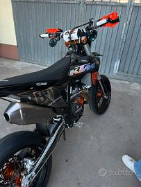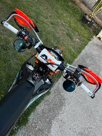 Vendo ktm sxf trasformato a smr 450 2024 OMOLOGATA per due persone TRIPLA OMOLOGAZIONE (cross enduro e motard) OMOLOGATA con gomma post 160 La moto ha 90h di motore e di telaio per cui praticamente nuova. monta i seguenti pezzi: Centralina carrot Cambio elettronico Frizione antisaltellamento Leveraggio motard vm racing Piastre motard vm racing Terminale akrapovic Impianto frenante accossato Carter hinson Paratelaio in carbonio Cover serbatoio in carbonio Parafanto ant in carbonio Paramani Rtech Leva frizione in ergal Leva freno post in ergal Tappo serbatoio in ergal Vite scolo olio in ergal Pompa acqua in ergal Coperchio frizione hinson Tappo rabbocco olio in ergal Trasmissione NUOVA Cerchi FABA Astenersi sognatori o perditempo se siete interessati potete scrivermi su WhatsApp 3923842780