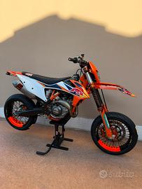 Vendo fantastico ktm Vmracing factory edition sxf smr 450 anno 2022 in condizioni da vetrina, tripla omologazione completa, compreso frecce fari led impianto elettrico e blocchetto chiavi vm. Omologata per 2 posti a sedere, vm racing. Nasce con 5 marce non 4 come i modelli normali La moto è completamente originale, MAI utilizzo pista, solo strada, quindi immacolata, ha solamente 62.3 ore totali originali di vita, effettuato cambio olio e filtro regolare con esclusivamente olio motorex. Trasformata completamente motard con cerchi excel mozzo Faba e gomme Pirelli NUOVE. Il prezzo è riferito escluso di impianto radiale completo accossato arancio nuovo limited edition e Cmt, da aggiungere al prezzo se interessati durante la visione della moto. Portatarga regolabile black nuovo appena montato compreso di frecce fanali stop tutto funzionante. Guidabile con patente A2 a 18 anni.