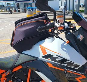 KTM SMR 990 "la vera R". Aprile 2010. Km 17900 Cerchi Marchesini forgiati, pinze freno Brembo monoblocco, sospensioni WP pluriregolabili con steli forcella con riporto al Tin. Paramani con freccie e luci diurne integrate, faro ant. a led, borsa serbatoio, sella comfort e bauletto Givi. Vari accessori in Ergal (pezzi originali in dotazione). Moto PERFETTA in ogni sua parte, batteria e tagliando generale ottobre 2025.