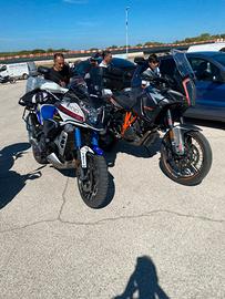 Vendo moto in perfetto stato Gomme nuove Versione r Faretto agiuntivi Barre paratelai arancioni Luci led Cruise control Carplay istallato Quick shift up e down cambio elettronico salita e discesa Mai caduta Grafiche personalizzate Doppie valigie e bauletto posteriore anparte disponibili . Tagliando appena effettuato e gioco valvole anche a 50 mila Servatoii da 23 litri consumi bassissimi e coppia da paura