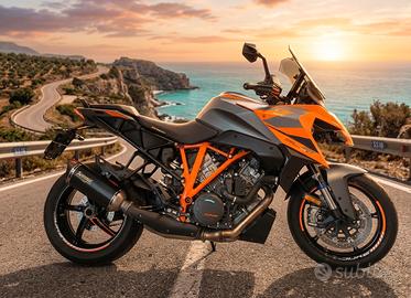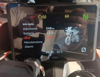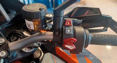 Ktm super duke gt 1290 monta i seguenti accessori: Parabrezza fumè originale Adattatore per smartphone originale Hill hold control (hhc impedisce alla motocicletta di rotolare all'indietro involontariamente) Luce di stop adattiva Quickshifter+ cambio elettronico sia in salita che in scalata Regolazione della coppia del motore in fase di rilascio (msr)riding mode "track" Funzione anti-impennata disattivata Launch control dispositivo del controllo dello slittamento della ruota per il controllo della trazione (9 stadi) Adattamento della sensibilità accelerazione Tech pack Silenziatore akrapovič originale ktm Protezione terminale in carbonio Sella ergo riscaldata del pilota Portatarga sportivo originale Kit degli adesivi dei cerchi originale Pompa freno radiale brembo di serie Pompa frizione radiale brembo di serie Pinze radiali brembo di serie Tubi in treccia di serie Luci full Led luce anteriore adattiva si accende un altra luce quando si piega in curva per illuminare correttamente la strada Cruise controll Manopole riscaldate Paramanti chiave accensione moto keyless (si accende senza inserire la chiave) Ammortizzatori sia anteriore che posteriori Elettroniche regolabili nel menù della moto imballatti nelle scatola ci sono i pezzi sostituiti in concessionario tra cui sella originale classica, terminare originale classico, parabrezza trasparente. Valuto scambi con auto o moto