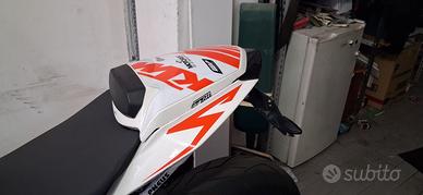 Moto con svariati accessori powerparts (tappi serbatoi liquidi leve freno etc), manopole riscaldate, copricarter trasparente evotec ,monoposto , decat arrow e scarico sc con mappatura a banco fatta da preparatore genovese(gestisce team in supersport) gomme al 50 % anche qualcosa di piu km 95k gioco valvole fatto da poco scarico originale + akrapovic in titanio, sella passeggero, catalizzatore originale prezzo trattabile