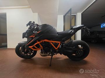 Vendo KTM Super Duke 1390 R in condizioni da vetrina, maggio 2024, con 17.500 km. Moto curata maniacalmente, sempre ricoverata in box e utilizzata con estrema attenzione. Accessori e Performance: Elettronica: TECH PACK (tutte le funzioni sbloccate). Motore: Rimappatura by BSR Motoracing, Scarico completo DOMINATOR (con db killer), Filtro aria Sprint Filter F1, Batteria alleggerita Skyrich. Ciclistica & Freni: Pompa Freno Brembo 19 RCS, Link posteriore +2cm (migliora l'ingresso in curva), Barre paramotore SW Motech. Estetica PowerParts: Specchi endbar, Monoposto in carbonio, Fly screen in carbonio. Altro: Porta targa Lightech. Manutenzione e Stato: Tutti i tagliandi eseguiti regolarmente presso rete ufficiale KTM (storico dimostrabile). Gomme Dunlop MK3 al 70%. REGALO: Treno di gomme CONTINENTAL CONTISPORTATTACK 5 nuovo, ancora da montare. PARTI ORIGINALI: Tutti i componenti sostituiti vengono consegnati con la moto. Vendo per passaggio a cilindrata minore, valuto scambi. N.B. Non vendo accessori separatamente.