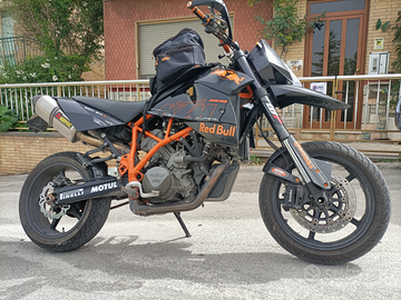 Vendo a malincuore dopo circa 16 anni per cambio genere KTM 950 Smr Supermoto(Immatricolazione Anno 2007) tenuta in modo maniacale,Perfetta in tutto,tagliandata e controllata ogni 7000 km dal Mio meccanico di fiducia KTM,plastiche cubicate in carbonio,scarico completo Akrapovic (Evolution), Filtro Completo ITG, Tagliandata,Cambio olio Motore, Olio Forcelle, Olio Freni Ant/Post/,Filtro Olio,Filtrini,Pompa Freno Nuova Posteriore, Pasticche Ant/Post/ Seminuove,Gomme Ant/Post/ ( Dunlop Mutant) in buono stato, borsone serbatoio originale KTM,leva freno Ant / KTM, Frizione Revisionata,Disco Posteriore a Margherita Nuovo,Forcelle Ant/e Mono Ammortizzatore Post/ REVISIONATI,Bollo Pagato,Batteria Yuasa Seminuova ,Faro Luce Anteriore Led( Angel)Portatarga e faro Post/(After market),Catena(Arancio),Corona(Arancio),Pignone(SEMINUOVE) Cavalletto Centrale,km circa 85 Mila Originali. REVISIONATA. Qualsiasi prova con meccanico di fiducia.Moto in condizioni davvero perfette. No Perditempo,No Affaristi,No Truffe.SOLTANTO Persone Serie davvero interessate.Disponibile per altre Foto e contatto telefonico. Prezzo NON Trattabile.VALUTO SCAMBIO con YAMAHA TMAX