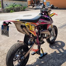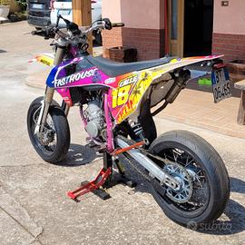 Vendo per inutilizzo la mia KTM SX 125 2003 con doppia omologazione enduro/motard, la moto è sempre stata tenuta bene e sempre stata usata in strada, mai pista o enduro ed è sempre stata tagliandata ogni 20 ore. Il motore è stato rifatto completamente 20 ore fa. La moto a livello di motore monta: -Pistone vertex bifascia -Biella hot rods -Testa originale lavorata -Accensione a rotore interno pvl 22,5° anticipo originale -Pacco lamellare originale con lamelle boyesen -Carburatore keihin pwk 38 -Espansione hgs -Terminale bud racing inox -Copricarter frizione boyesen A livello di estetica monta: -Restyling con plastiche e serbatoio del ktm sx del 2017 -Cerchi motard originali ktm smr 450 con impianto frenante originale, pastiglie praticamente nuove -Gomme mitas sport force quasi nuove -Rapporti 13-46 -Manopole della circuit -Manubrio pro taper -Fari a led -Frecce a led -Portatarga pieghevole -Coprisella della blackbird -Impianto elettrico a batteria Per il resto è originale. La revisione scade il 08/2027, per ulteriori informazioni contattare