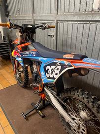 vendo a malincuore magnifica (ktm sx 125 del 2017) la moto è sempre stata tenuta maniacalmente come si può vedere in foto non presenta alcun tipo di problema le forcelle sono appena state revisionate quindi pari al nuovo, la moto monta una espansione Fresco per il resto è completamente originale.