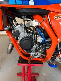Vendo come da foto ktm sx 125 2018. La moto è stata immatricolata a dicembre 2025 da vmracing, ha tripla omologazione a libretto cross/enduro/motard. OMOLOGAZIONE PER DUE PERSONE Motore originale monta pacco lamellare vforce 4r, il pistone è stato rifatto a 100 ore e la moto complessivamente ha 103 ore, quindi è stato finito anche il rodaggio. Forcelle revisionate a 100 ore e gomme nuove. Vendo per passaggio a cilindrata superiore.