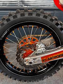 Cerchi Kite Elite con mozzi e nipples arancio con gomme Pirelli da cross (possibilità di avere anche i cerchi motard su richiesta)