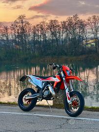 Come da titolo la moto è un sx 125 annata 2020 con tripla omologazione (cross, motard, enduro). La moto viene fornita con un kit motard (con cerchi faba arancio e statura delle gomme al: anteriore 90%, posteriore 80%).