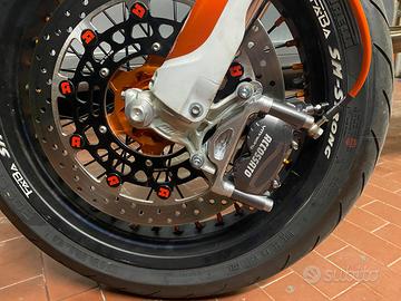 La moto è dotata anche di un impianto frenante maggiorato radiale con pompa accossato 16x18 e pinza accossato.