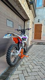 vendo ktm sx 125 del 2021 immatricolato da vm racing nel 2022. tripla omologazione (enduro, cross, motard) un posto a sedere completa di impianto elettrico, blocchetto chiave e cavalletto laterale. la moto ha 131 ore, pistone e biella sono stati fatti 40 ore fa. sospensioni appena revisionate. Tagliando ogni 15 ore. La moto si accende al primo colpo non ha nessun problema. Gomma anteriore 70% (camera d aria) Gomma posteriore 20% (mousse) Insieme alla moto cedo: silenziatore sp (presente in foto) silenziatore scalvini silenziatore originale corona da 52 e 46 denti corona 48 denti (presente in foto) kit di plastiche originali kit di plastiche bianche per maggiori informazioni o foto non esistate a contattarmi.