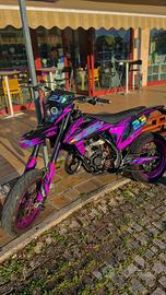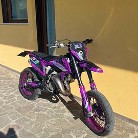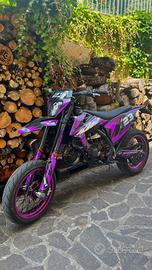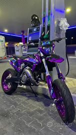 La moto è in assetto motard, con cerchi annodizzati viola (no adesivi o vernice), gomme praticamente nuove metzeler e forcelle tarate motard, ma all' occorrenza dispone di TRIPLA OMOLOGAZIONE: ovvero MOTARD-CROSS-ENDURO, anche se non è mai stata utilizzata a quello scopo.