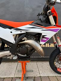 Vendo ktm sx 125 motard 2024 pari al nuovo, moto perfetta con motore completamente revisionato assieme alle sospensioni, con tripla omologazione completa di tutto l'impianto frecce, faro led, cerchi excel motard con bicolore arancio, gomme Pirelli diablo rosso.