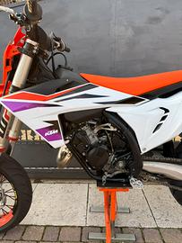 Vendo ktm sx 125 motard 2024 pari al nuovo, moto perfetta con motore completamente revisionato assieme alle sospensioni, con tripla omologazione completa di tutto l'impianto frecce, faro led, cerchi excel motard con bicolore arancio, gomme Pirelli