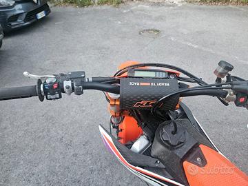 La moto è stata acquistata da vm racing è dotata di una tripla omologazione cross , enduro , motard monta tuttto il necessario per la strada con cerchi faba avanti e dietro e un'impianto completo accossato , con la moto si avrà anche tutto il necessario per il cross con cerchi già gommati nuovi mai usati e impianto frenate originale da cross . Come accessori la moto monta il cambio elettronico più varie parti anodizzate . In totale la moto ha 160 ore con costanti tagliandi ogni 25 e il cambio del pistone a 125 ore .