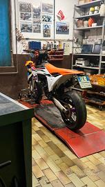 Vendo KTM SX 125 2024 per passaggio a cilindrata superiore (MAI USO PISTA), moto immatricolata VM RACING con tripla omologazione (cross, enduro e motard), ad oggi conta 380H, motore rifatto completamente a 280H. Venduta senza paramani. la moto monta: -kit cerchi motard vm racing -Rapporti allungati 14-45 con corona anodizzata arancione -leve SEPTAR viola -manopole ODI -manubrio NEKEN arancione -microfrecce -faro led vm racing -set viti varie -pezzi anodizzati vari insieme alla moto cedo: -kit cerchi cross -Corona 53 -Corona 49 anodizzata arancione -Pignone 13 -Disco freno anteriore originale -cavaletto per il forcellone KTM -pancia bozzata originale KTM -pompetta forcelle -coperchio cassa filtro chiuso/aperto Per altre info in DM, NO PERDI TEMPO E ROTTURE