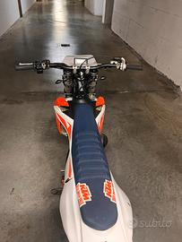 Splendida ktm sx 125 con TRIPLICE OMOLOGAZIONE! Si presenta in perfette condizioni estetiche e meccaniche, ore totali 112, usata pochissimo e solo in strada con manutenzione regolare, tachimetro digitale, si fornisce con sella di selle della valle, para pancia in carbonio e cavalletto centrale (da farete)+ un kit di manopole nuovo e 2 gomme posteriori e 1 anteriore da cross/enduro. NO SCAMBI