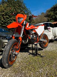 in oltre monta un pacco lamellare vforce 4r, espansione fmf, silenziatore akrapovič in titanio e carbonio, sospensioni tarate motard, impianto frenante 4p accostato 16x18 e varie altre chicche estetiche.