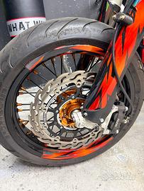 - Cerchi motard della MX Victory con il mozzo anodizzato arancione (è stato anche applicato sulla lama il bicolor preso insieme alle grafiche). Anche le gomme sono state cambiate recentemente e sono attualmente al 90%
