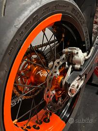 -è stata effettuata una revisione e taratura motard interna sia alle forcelle che al mono ammortizzatore da ws suspension.