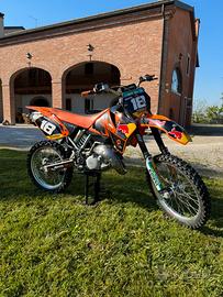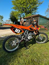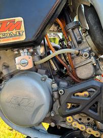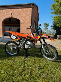 Vendo splendida Ktm sx 125 del 1998 con motore rifatto da 35.2 ore e carter in magnesio. Ottima per tutte le età e con prestazioni a affidabilità da vera Ktm. RESTAURATA. Sono stati eseguiti i seguenti lavori: - candela nuova NGK - cuscinetti ruote anteriori e posteriori nuovi SKF - pignone 14 denti e catena 520 nuova e ingrassata - filtro aria nuovo e ingrassato - cambiati tutti e due i radiatori, svuotato tutto l'impianto e messo liquido nuovo - cambiati i dischi della frizione - olio trasmissione messo nuovo (motul transoil expert 10w40) - svuotato completamente il serbatoio e ripulito dentro e messo benzina e olio bardhal al 2.1% - smontato completamente il carburatore e ripulito. - cambiato il rubinetto della benzina e tubetto benzina-carburatore. - terminale aperto e sostituita la lana di vetro interna - tirate giù tutte le leve/pedane e verniciate di nero opaco per metalli - manopole progrip nuove La moto è pronta per essere usata. Per qualsiasi info/foto/visita/prova contattatemi qui o su whatsapp, oppure chiamatemi direttamente al 3515728820. NO PERDITEMPO. Sx, exc, sxf, Yz, Yzf, kx, Kxf, cr, Crf, tc, fc