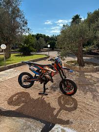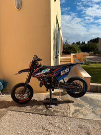 La moto è una versione supermoto completa, con avantreno derivazione fs/smr 450, mono preparato supermoto, impianto freno brembo, cerchi faba, grafiche 100% personalizzate, tutto il catalogo in ergal e anche altri pezzi.
