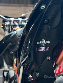 La moto monta qualche pezzo in ergal pvviamente arancione, pacco lamellare v-force3 e Faba SMstrong con mozzo e nipples arancio, monta gomme michelin power pilot praticamente nuove, impianto elettrico full led con frecce e abbagliante 100% funzionanti