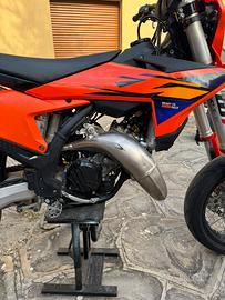 vendo splendido ktm sx 125 con solamente 25h,condizioni eccellenti, trasmissione motard nuova con corona in ergal,sospensioni tarate motard,tripla omologazione(cross enduro motard),cedo insieme cerchi cross gommati originali con rapporti originali.Vendo per passaggio a macchina