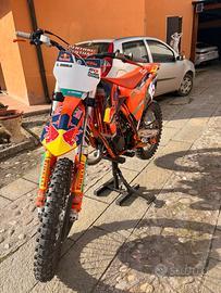 Vendo ktm sx 150cc di fabbrica, tenuto molto molto bene, motore con 40 ore, grafiche personalizzate,cerchi wrappati neri,piastre powerparts, sella powerparts, scarico completo fmf (ho anche l’originale)