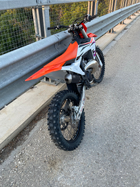 La moto ha 48 ore usata solo in enduro il primo pistone e stata cambiato ha 12 ore come consigliato da casa madre nessun lavoro da fare oltre il cambio copertoni che facendo enduro sono consumati unico danno che ha e dovuto da una schienata ha 40 km/h e si e fatta solo qualche segno insieme al codino con una piccola crepa ma per il resto e perfetta . Prezzo trattabile senza sognatori