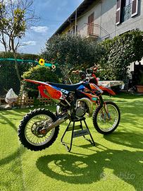 Vendo KTM SX 85 anno 2009, moto in ottime condizioni sia estetiche che meccaniche, pronta all’uso senza alcun lavoro da fare. Moto appena sistemata in maniera completa con numerosi lavori eseguiti recentemente: Lavori appena effettuati: - impianto frenante anteriore completamente nuovo (pinza + tubo) - spurgo impianto freno posteriore - uniball ammortizzatore posteriore nuovi - molla ammortizzatore posteriore montata per piloti da 75 kg in su - plastiche nuove con grafiche nuove - pulizia completa del serbatoio - spurgo frizione - sostituzione olio frizione originale Magura - tagliando appena eseguito - cuscinetti ruota nuovi - revisione completa carburatore - revisione completa silenziatore di scarico - catena, corona e pignone nuovi - leva cambio nuova - presenti anche alcuni accessori KTM PowerParts Moto tenuta con grande cura, sempre seguita e pronta per essere utilizzata da subito. Perfetta per chi cerca una moto già sistemata e con assetto adatto a un pilota di peso superiore allo standard. ho anche la molla originale. Prezzo: 2190€ No perditempo, la moto è pronta e non necessita di alcuna spesa. Valuto Scambi Per info, foto aggiuntive o visione contattami in privato.