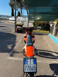 Vendo come da titolo KTM SXF-450 anno 2018,4 marce, immatricolato nel 2025 da VM RACING con TRIPLA OMOLOGAZIONE(cross,enduro,motard). la moto ha 170H totali, mai aperto il motore, sempre fatta la manutenzione ogni 10ore cambio olio, filtro e filtro aria, sono state appena montate le gomme e mousse nuove come si puo vedere dai segni ancora sulle gomme, lavata sempre dopo ogni uscita, usata da amatore per i campi e strade sterrate. MAI PISTA. essendo immatricolata nel 2025 la prossima revisione da fare é fra 4 anni. presenta leggeri segni di usura sulle plastiche ma cedo un altro kit di plastiche insieme alla moto presente anche di tabella piatta, é stata sostituita da circa 2 ore catena e corona, ed é stato fatto anche il tagliando. insieme alla moto cedo anche: -2 filtri dell olio(nuovi) -1 litro di olio(nuovo) -filtro aria(nuovo) -due leve(freno e frizione)(nuove) - due specchietti da manubrio(nuovi) -1kit di plastiche con tabella piatta - il suo altro cavalletto laterale da infilare nel mozzo posteriore -coppia di gomme cross( anteriore praticamente finita e posteriore 80%) .la moto funziona perfettamente, non ha mai avuto ne problemi ne perdite di olio.( specifico che le macchie in terra sotto la moto non é olio ma semplice acqua essendo stata lavata)prezzo trattabile, valuto scambi con moto da pista per maggiori informazioni o ulteriore foto scrivere su whatsapp a questo numero 3240896703.